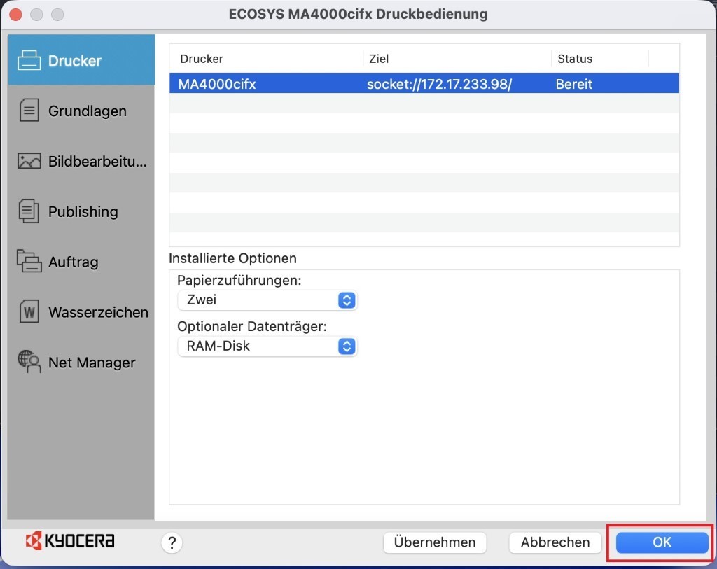- Apps — Kyocera Printpanel — OK zum Speichern