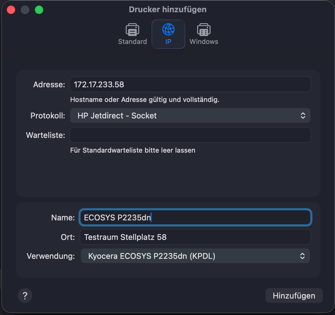 empfehlen wir, den Drucker nicht als “Bonjour Multifunction” hinzuzufügen, sondern als “Socket Printer”.