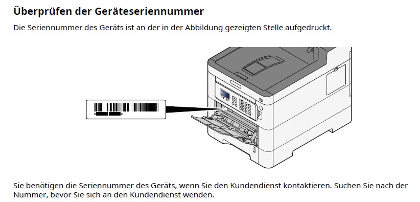 Die Seriennummer des Geräts ist, wie auf der Abbildung zu sehen, an folgender Stelle zu finden.